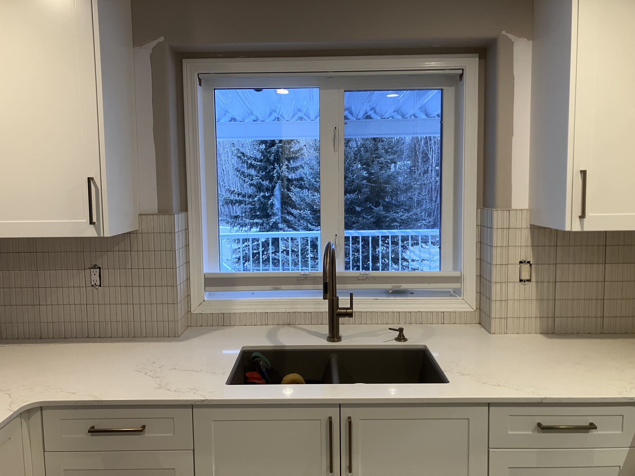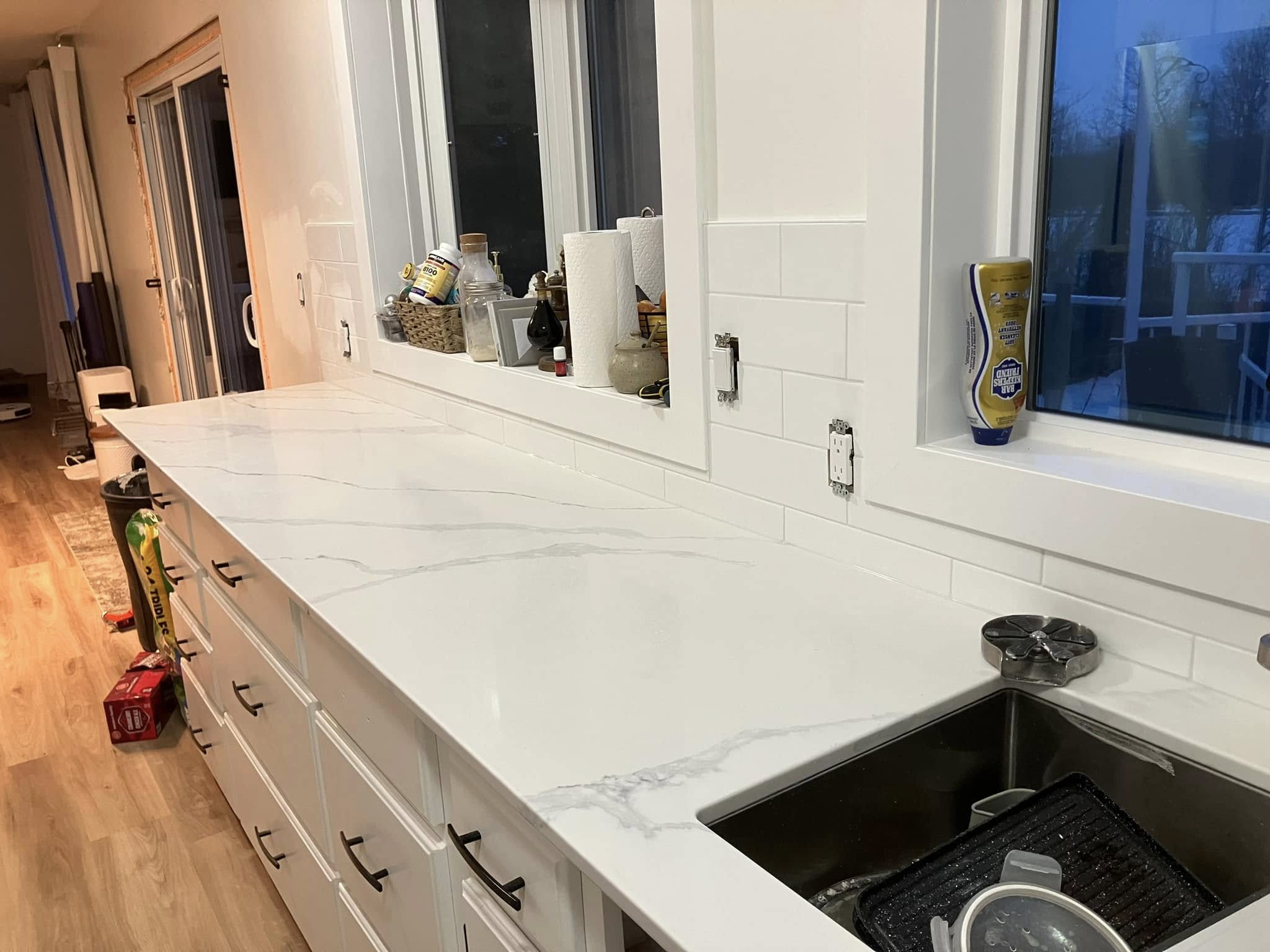 These Clients took advantage of the "Simply White Kitchen Backsplash" Package Deal and used some of the savings for new counters and sink/faucet.